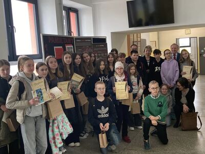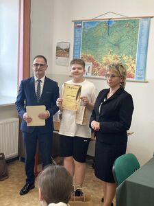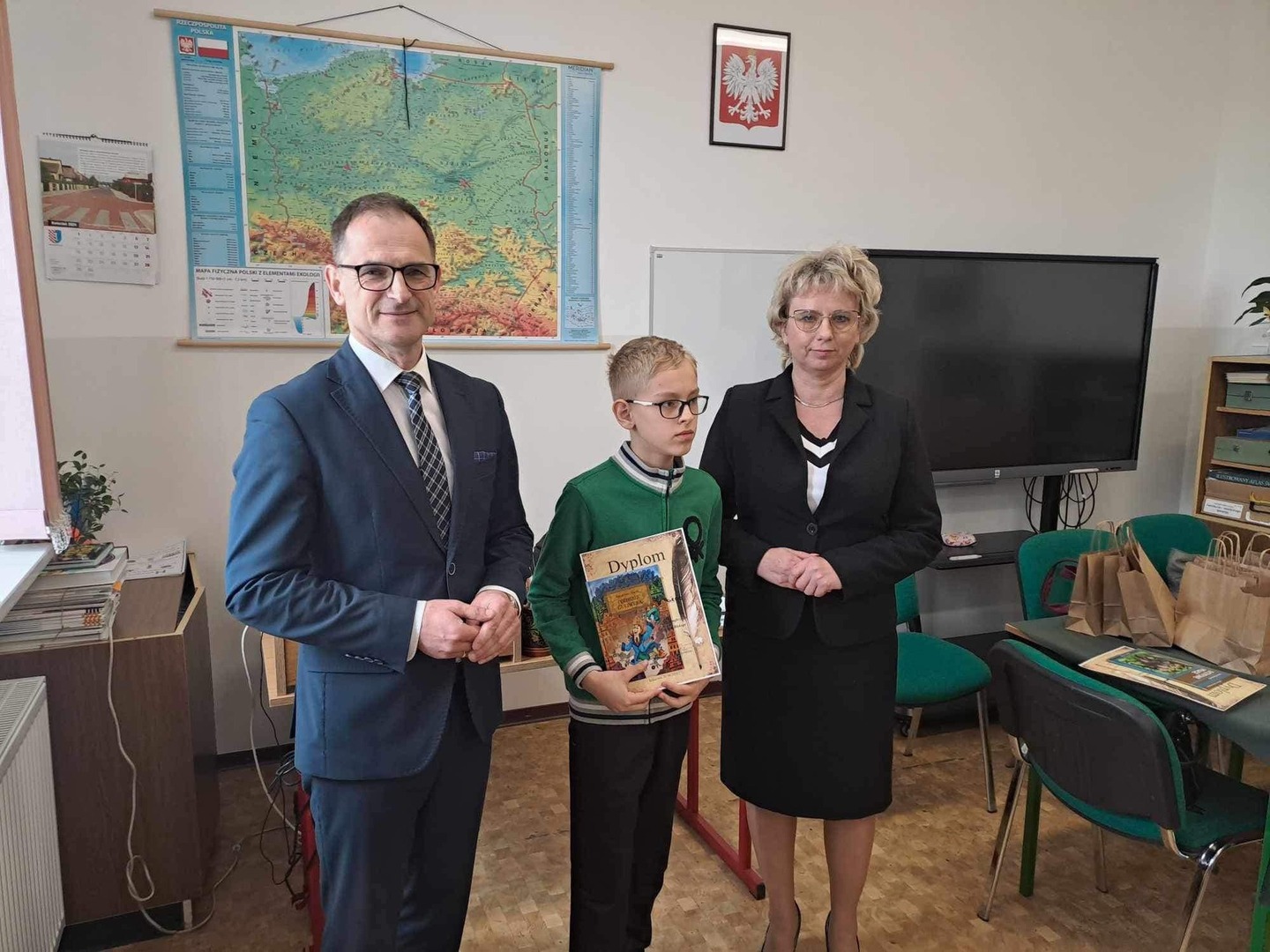 Zwycięzcy konkursu Daria Żak oraz Julia Weiss otrzymali z rąk Pana Wójta oraz Pani Sekretarz Gminy pamiątkowe pióra, pozostali nagrody książkowe, dyplomy i słodycze. Gratulujemy i zapraszamy za rok.