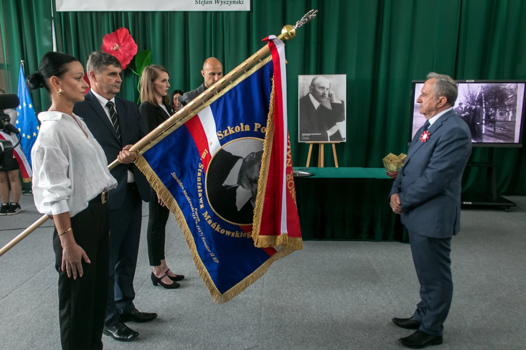 W piątek 14.06.2024r. odbyła się uroczysta ceremonia wręczenia sztandaru szkole. Po poświęceniu sztandaru, przedstawiciele Rady Rodziców przekazali go dyrektorowi szkoły. Następnie, nowo powołany poczet sztandarowy uroczyście odebrał symbol szkoły, a społeczność uczniowska złożyła na niego ślubowanie. W symbolicznym geście, osoby zasłużone dla szkoły wbiły pamiątkowe gwoździe w drzewiec sztandaru. W piątek, równocześnie z uroczystością wręczenia sztandaru, miała miejsce ceremonia poświęcenia figurki Matki Boskiej. Figura ta, ufundowana przez Aleksandrę Nożewską, została umieszczona w pobliżu szkoły, nawiązując do historycznej tradycji umieszczania podobnych figur w wykuszach szkolnych.