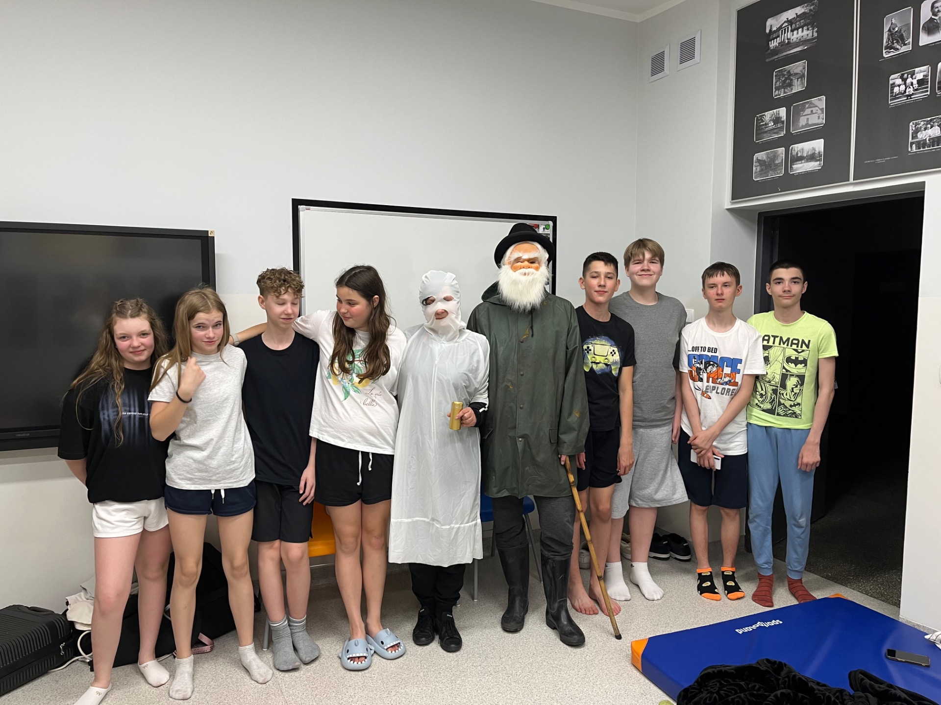 Jednym z najbardziej emocjonujących momentów było późnowieczorne spotkanie z duchami – ciemne korytarze, tajemnicze odgłosy i niespodziewane pojawienia się postaci z zaświatów wywołały dużo strachu i jeszcze więcej śmiechu. Mimo że niektórzy czuli lekki dreszcz, wszyscy świetnie się bawili.