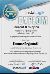 ogromną radością informujemy, że Tomasz Dryjański został laureatem II miejsca na szczeblu ogólnopolskim w prestiżowym konkursie matematyczno-informatycznym instaLogik!
