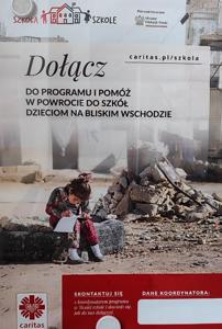 Pierwszym projektem, w który się zaangażowaliśmy, jest udział w programie “Szkoła Szkole”, którego celem jest wsparcie dzieci z Syrii pozbawionych dostępu do edukacji. Program realizowany jest w ramach działań statutowych Caritas Polska.