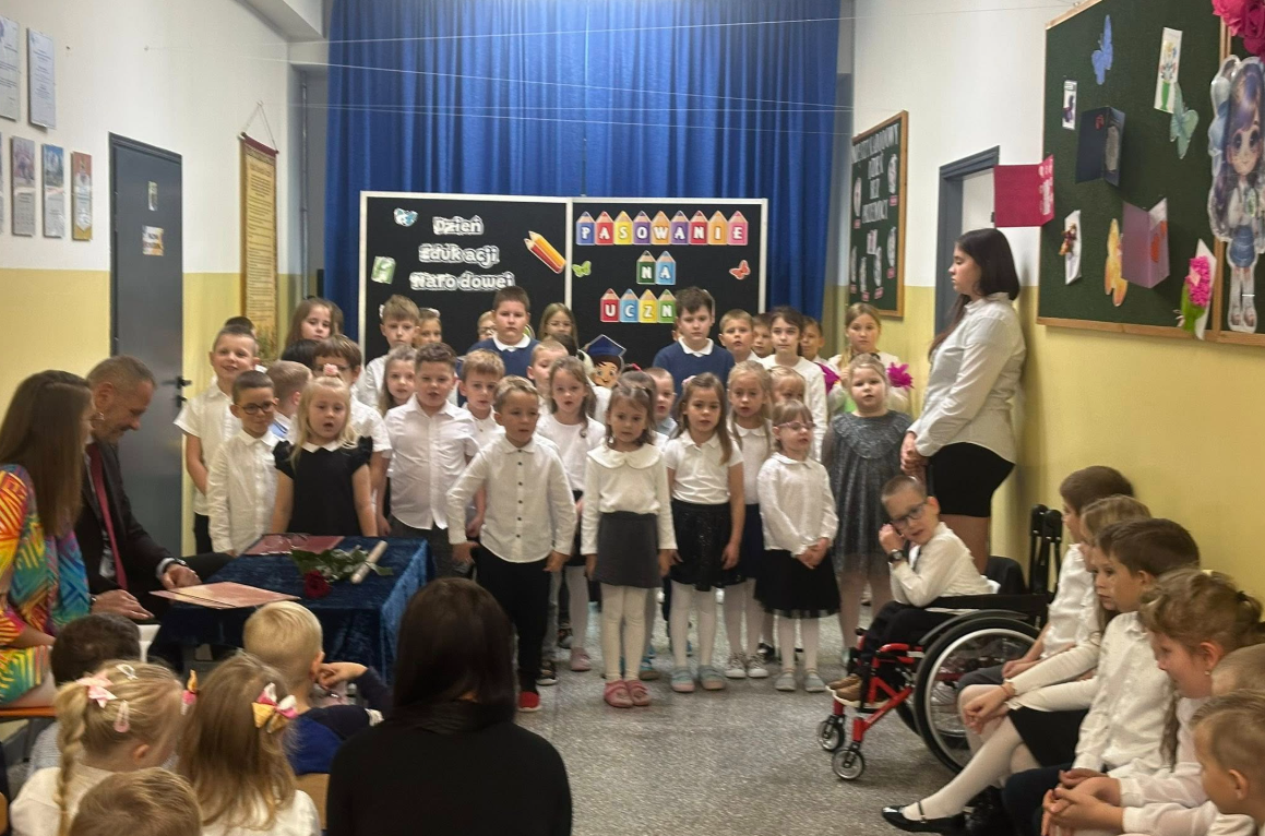 Następnie odbyło się ślubowanie uczniów klasy pierwszej. Pierwszoklasiści z dumą i przejęciem złożyli uroczyste przyrzeczenie, po czym zostali oficjalnie przyjęci do grona uczniów naszej szkoły.