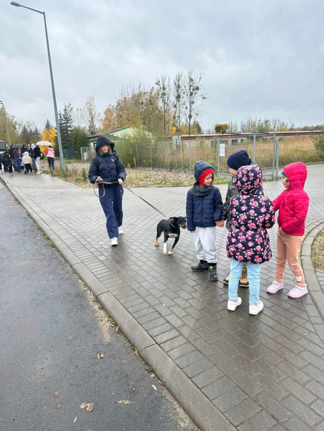 Mieliśmy też okazję wyprowadzić pieski na spacer, obdarować je uwagą, ciepłem i miłością. Dzieci z wielkim zaangażowaniem pomagały, ucząc się empatii i troski o naszych czworonożnych przyjaciół.