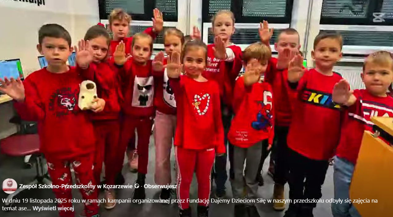 W dniu 19 listopada 2025 roku w ramach kampanii organizowanej przez Fundację Dajemy Dzieciom Siłę w naszym przedszkolu odbyły się zajęcia na temat asertywności pod tytułem „Ja Cię Nie Znam, czyli jak być asertywnym, aby być bezpiecznym”.
