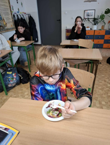 Klasa 5, w ramach kontynuacji Międzynarodowego Projektu Edukacyjnego – moduł „Poznajemy kultury świata”, a także z okazji Światowego Dnia Rzucania Palenia Tytoniu, przygotowała zdrową i smaczną przekąskę.