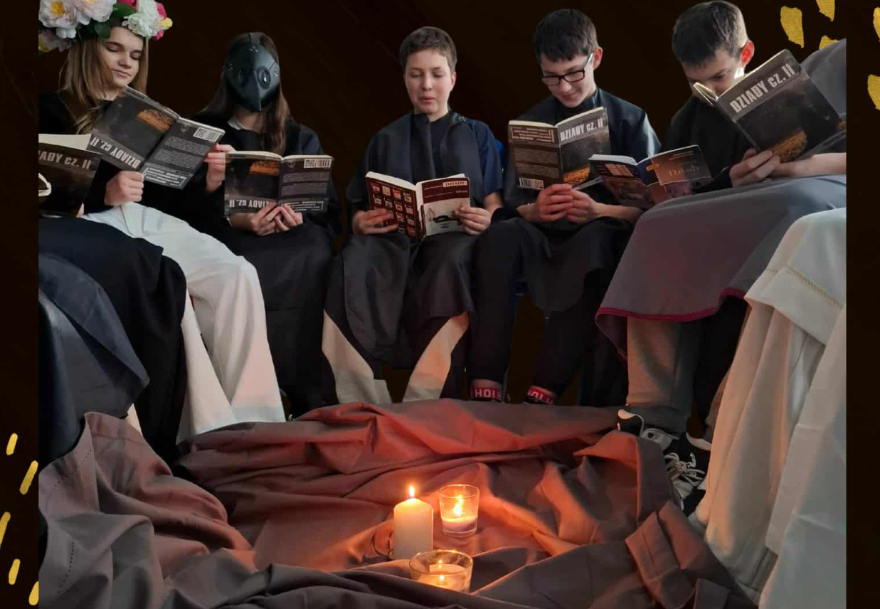 Podczas lekcji języka polskiego uczniowie nagrali własne słuchowisko oparte na „Dziadach” Adama Mickiewicza. To nie było zwykłe ćwiczenie z lektury, ale prawdziwe wejście w jej świat — pełen tajemnicy, emocji i symbolicznych postaci.